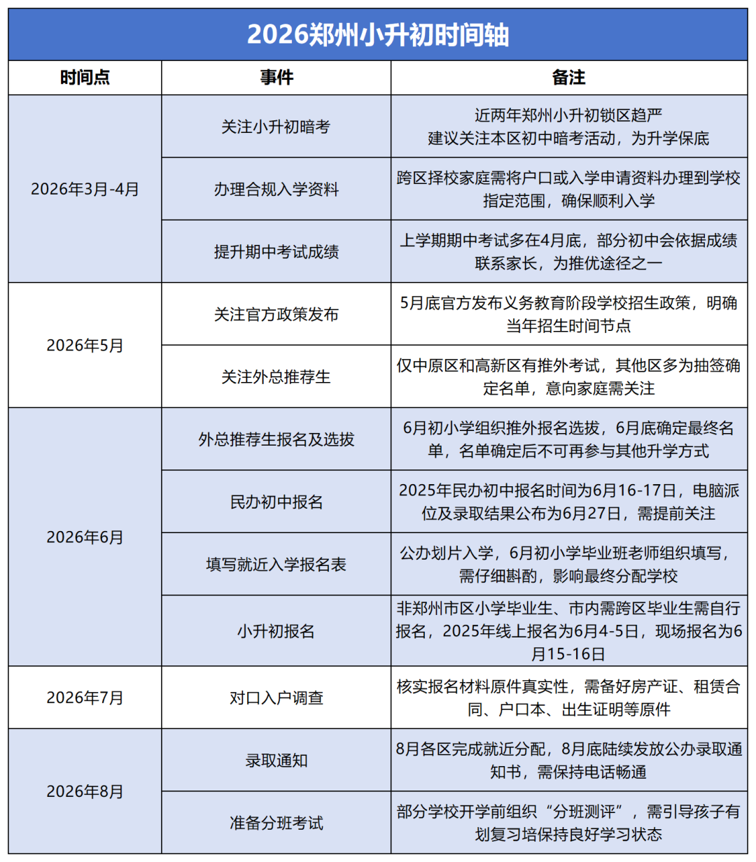 当前位置: 首页 资讯活动 2026郑州小升初关键节点全汇总!家长必存!