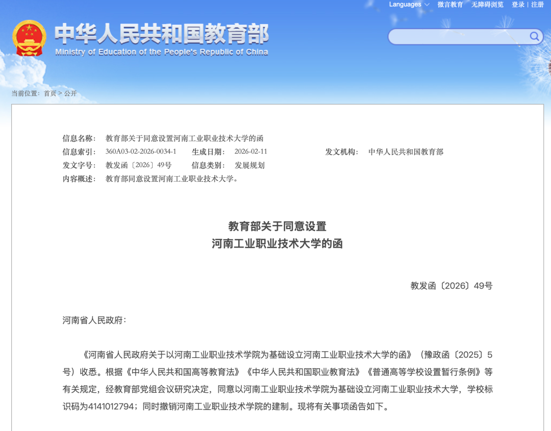 河南工业职业技术大学,原为河南工业职业技术学院,创办于1973年,时名五三一机械工业学校。1978年,学校更名为中原机械工业学校。2001年,升格为高等职业技术学校——河南工业职业技术学院。